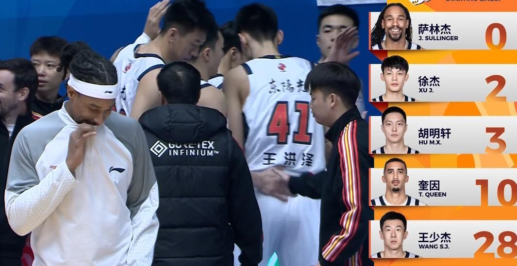 最后5分钟,杜锋提前换下胡明轩再上徐杰,4分58秒,超级工兵李文昊接奎因助攻飚进高弧顶空心三分;